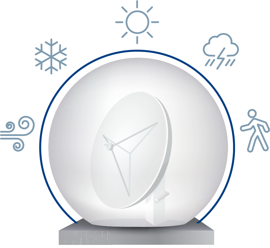 Our radomes are evaluated to ensurethey meet each customer’s specific requirements. As such, we have a wide range of radome models available with high wind speed ratings, greater snow and ice load capabilities, or the ability to meet other atypical environmental conditions. All configurations remain compliant with our self-imposed structural safety factors.